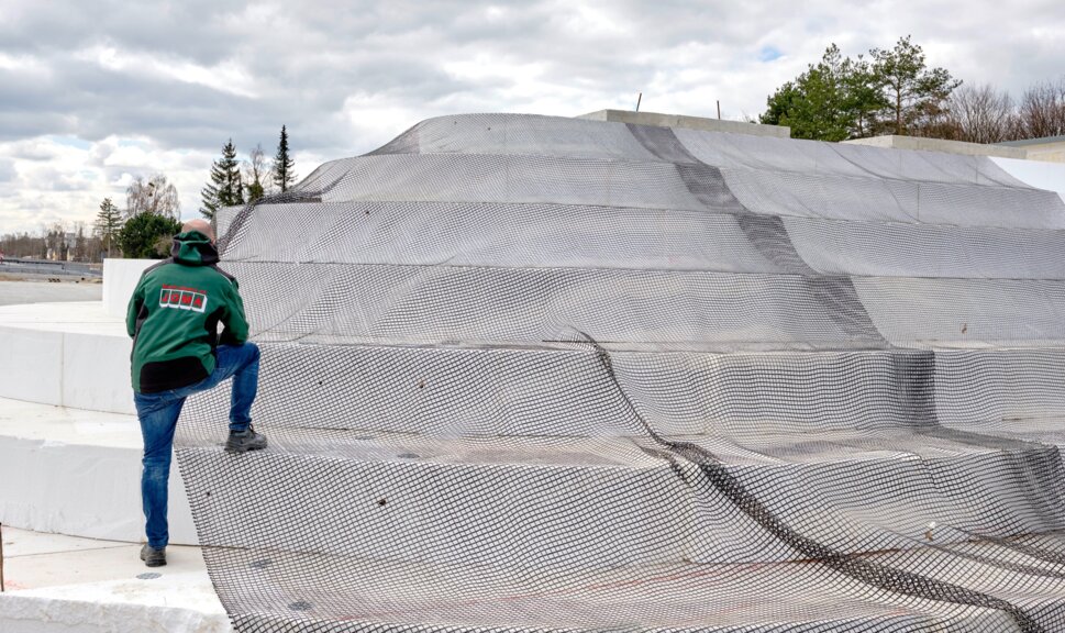 Dabei kommen große Blöcke zum Einsatz, die miteinander verkrallt werden. Durch die Größe ist der Einbau deutlich einfacher, schneller und kostengünstiger. Auch ist das AirPor in der Beschaffung günstiger als die sonst verwendeten Füllstoffe.